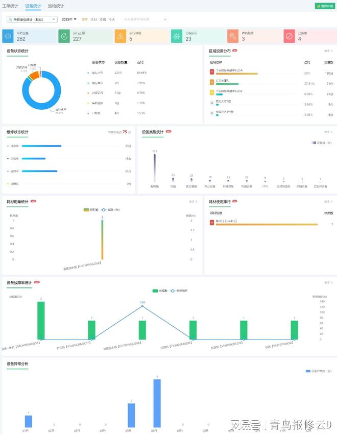 同时,学校管理员还能通过系统查看每月设备故障统计,像“投影仪每月平均故障2次,多集中在教学楼3层”,据此提前安排预防性维护,减少故障发生。
