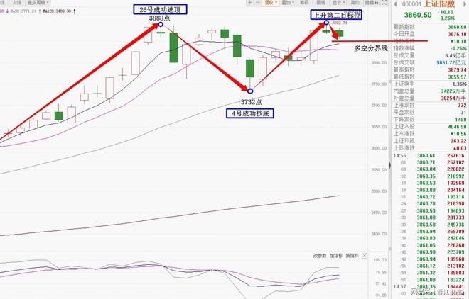提示:春江财富所说的逃顶、抄底,是指一个月内的波段顶点、低点,并不是别人所说的世纪大底、婴儿底。欢迎网友点赞、关注、收藏,查看更多大盘午评和收评文章,亲自验证!开门见山!如期针对上升第二目标位展开调整!(文后附图敬请验证)上周五,12号午评,春江财富发文预测,“就短线预判而言,大盘目前高点3892点已经抵达本轮上升波段第二目标位,网友不妨对此给予一定关注。”
