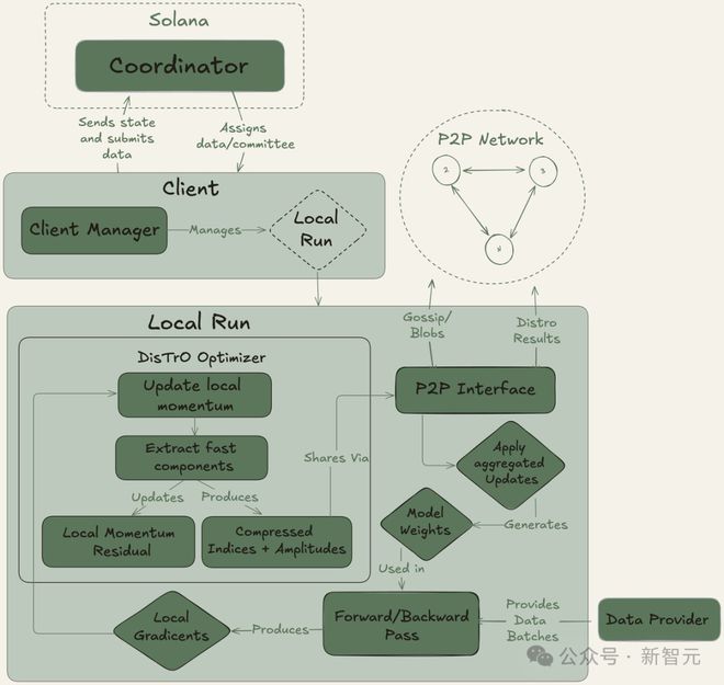 Psyche网络技术原理图,核心在于DisTrO优化器与Solana区块链
