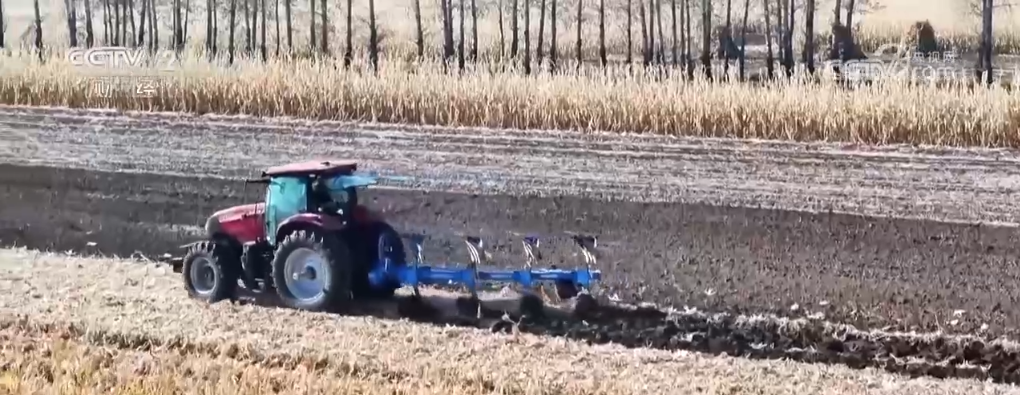 从空中看去,未收获的地方是呈现金色,收割后的地面,大型的翻地机跟在后面将秸秆直接翻入地下,翻地车一过就露出油汪汪的黑土地了。这些翻完的地之后还要耙平、起垄,这样第二年开春可以直接种植了。记者在当地采访期间,看到了这些农户几乎是24小时昼夜不停在进行收割和秋整地,可以说是“人歇机器不歇”,在抢抓农时,当地有句话叫“金色离田、黑色越冬”。