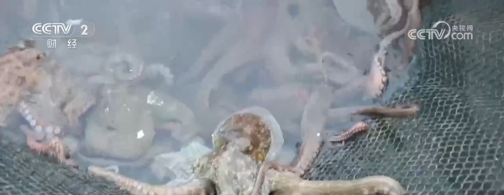 近日,福建连江黄岐半岛的养殖章鱼迎来收获季。养殖户使用天然饵料喂养,吸引众多客商前来采购。